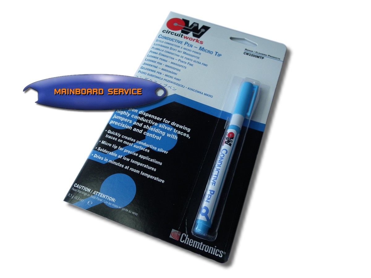 ปากกาเชื่อมลาย Print สำหรับใช้เขียนลงบน PCB เพื่อเชื่อมลาย Print แทนการบัดกรี มีคุณสมบัติเด่นคือเป็นตัวนำไฟฟ้าในรูปของของเหลว ทนกระแสได้สูง สามารถเก็บในอุณหภูมิปกติได้ มีอายุการใช้งานยาวนาน เขียนเสร็จ ใช้งานได้ทันที ไม่ต้องเป่าลมร้อนใดๆทั้งสิ้น เหมาะสำหรับช่าง Notebook และช่าง Electronics ทุกท่าน เป็นสินค้านำเข้า ราคาถูก ไม่มีพิษ, ไม่มีปัญหาสภาวะแวดล้อม / สินค้า 1 แท่ง ใช้งานได้ยาวนานกว่าปี / สินค้าคุณภาพสูงสุดจากประเทศสหรัฐอเมริกา