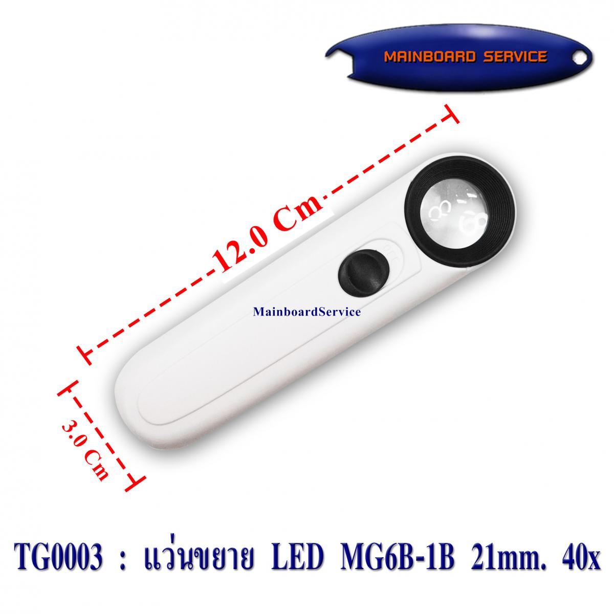 รายละเอียดสินค้า แว่นขยายขนาด 21 mm. กำลังขยาย 40 เท่า พร้อมหลอด LED 2 หลอด ใช้ battery ขนาด AAA 3 ก้อน รุ่น MG6B-1B