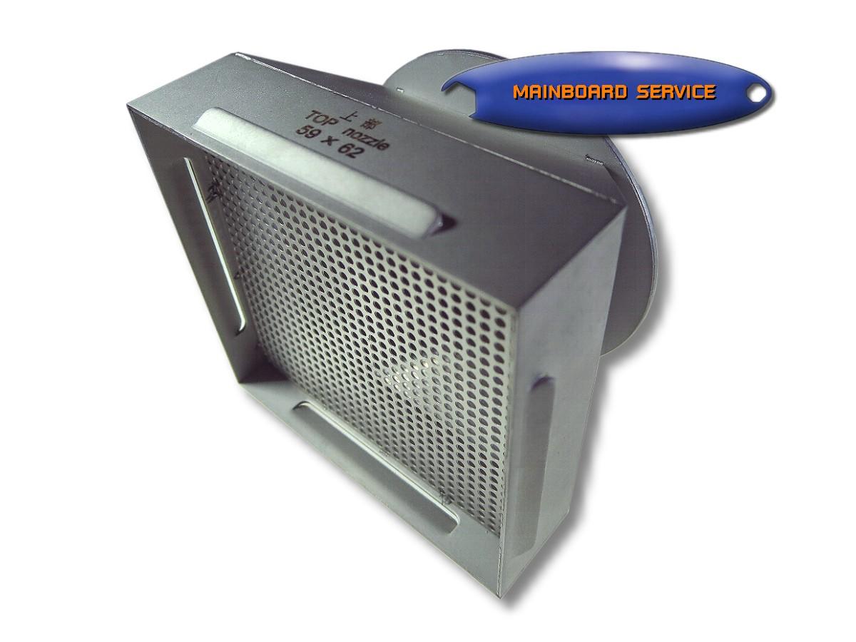 รายละเอียดสินค้า Top Nozzle BGA Rework Station M2BGA & 5860 ปลายหัวเป่าบน เครื่องเปลี่ยน Chips M2BGA และ รุ่น 5860,5830 ขนาด 59mm. x 62mm. ครอบคลุม BGA Chips ขนาด 58mm. x 61mm. ถึง 63mm. x 66mm. โดยการปรับระยะหัวเป่า