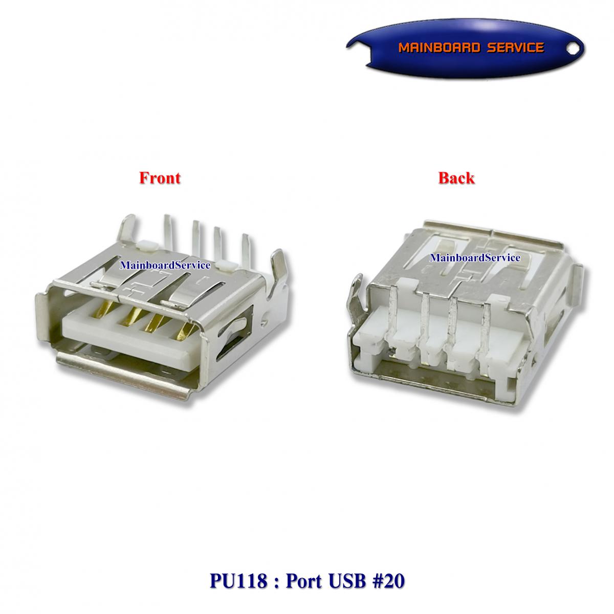 รายละเอียดสินค้า Female USB Port , Female USB Connector , USB Port ตัวเมีย เบอร์ 20 ตัวสั้น ขางอ 90องศา ขาลดระดับให้อยู่แนว PCB สำหรับบัดกรีลงขอบ PCB โดยมีขา 4 Pins + Shield Ground 2 Pins หน้าสัมผัสลายทองแดงอยู่ด้านล่าง เนื้อพลาสติกดำหรือขาว