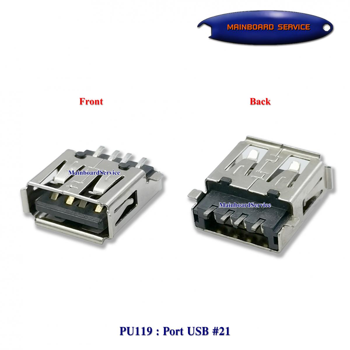 รายละเอียดสินค้า Female USB Port , Female USB Connector , USB Port ตัวเมีย เบอร์ 21 ตัวสั้น ขาตรง 180 องศา SMD ขาลดระดับให้อยู่แนว PCB สำหรับบัดกรีลงขอบ PCB 4 Pins + Shield Ground 2 Pins หน้าสัมผัสลายทองแดงอยู่ด้านล่าง เนื้อพลาสติกดำหรือขาว