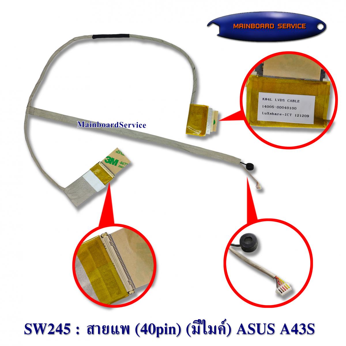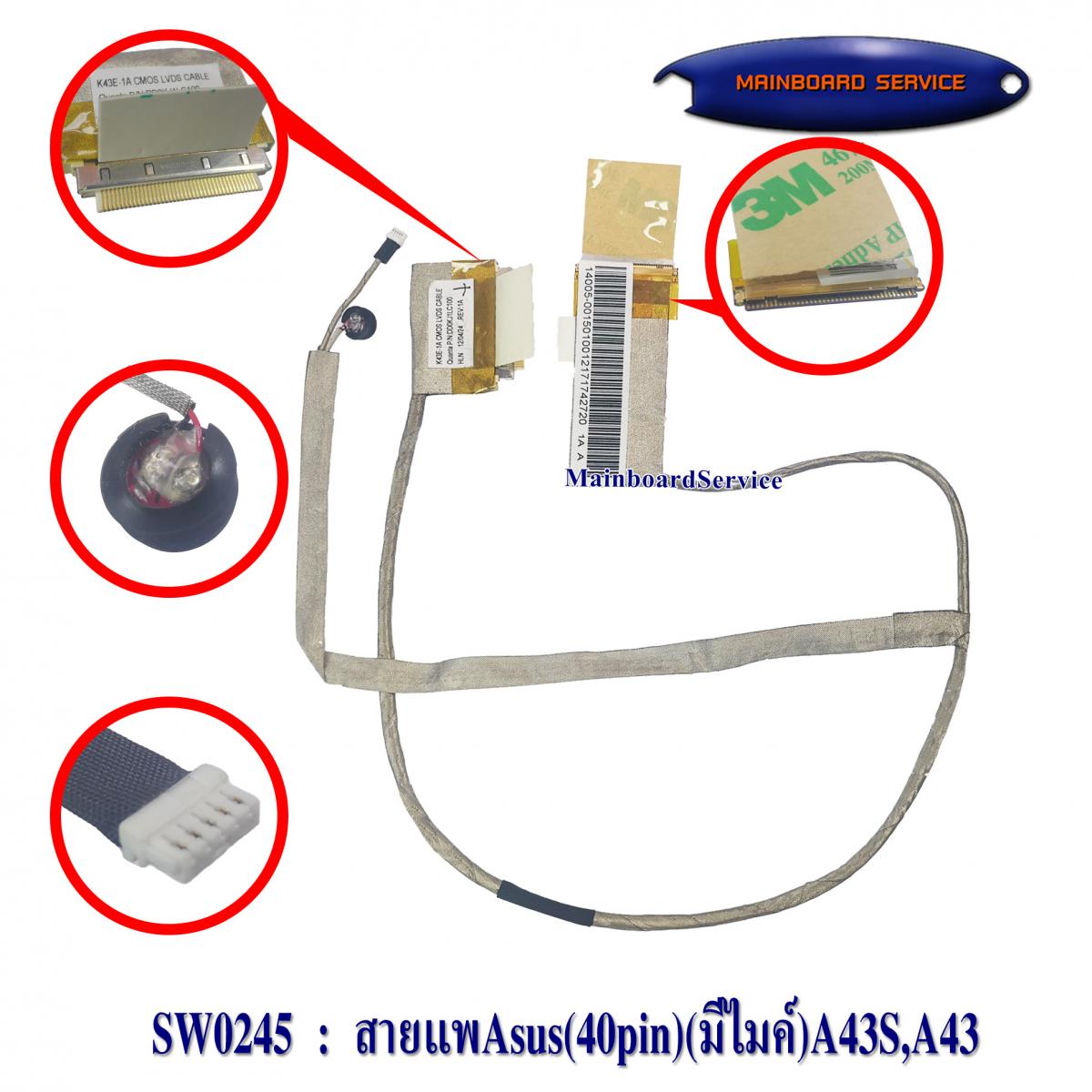 รายละเอียดสินค้า สายแพ(40pin)(มีไมค์) Asus A43SSupport : A43,K43E,K43SJ,K43SV,K43T,K43U,X44L(DD0KJ1LC000 HL)