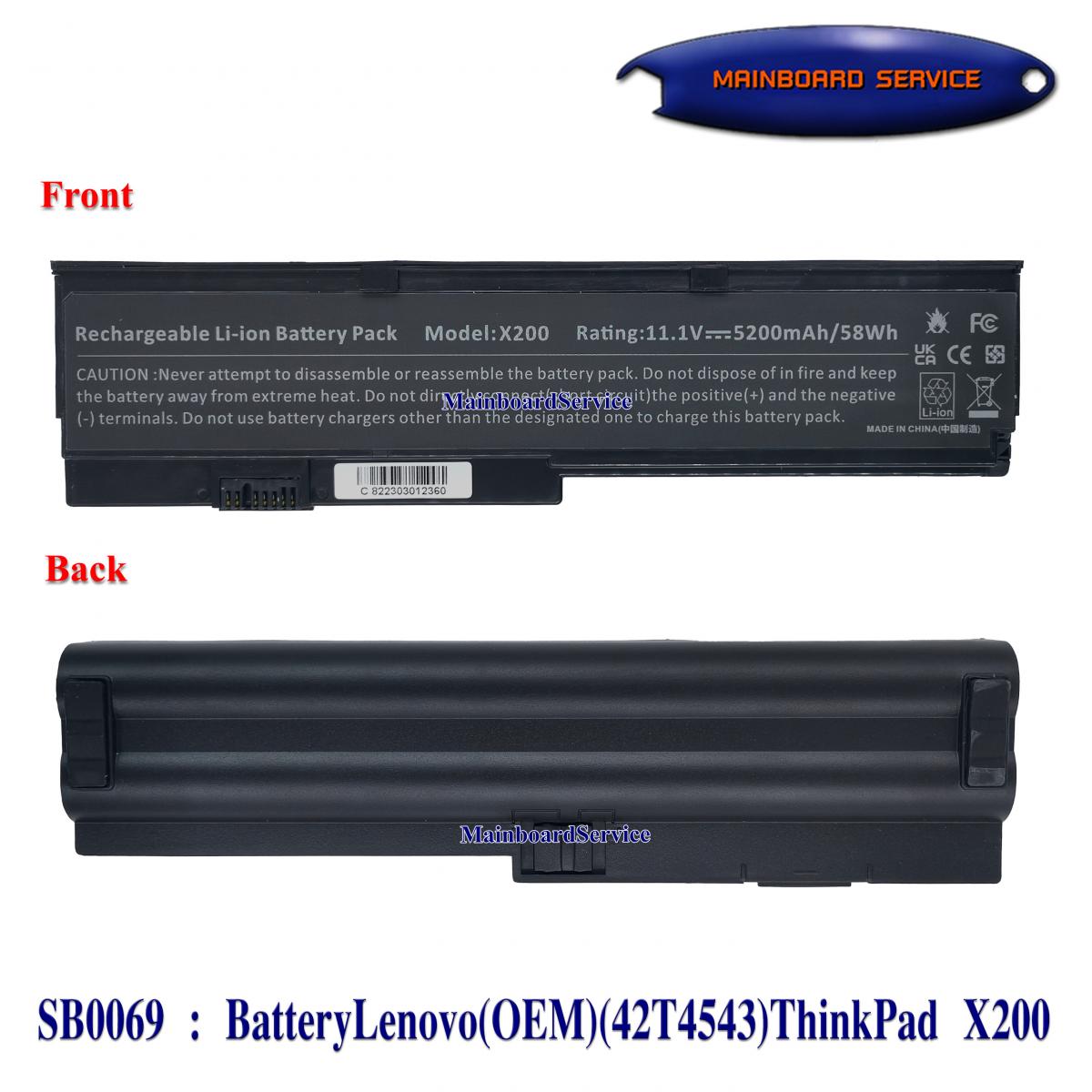 รายละเอียดสินค้า Battery for Lenovo 6cells 10.8Vdc 5200mAh.BatteryLenovo(OEM)(42T4543)ThinkPad X200,X200S,X201,X20(42T4835,42T4837,42T4647,42T4836,45N1171,42T4834,42T45,42T4648)