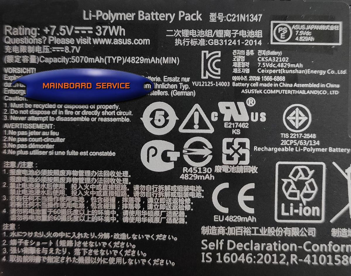 รายละเอียดสินค้า Battery Asus (C21N1347) K555LSupport : X555LA,K555LD,X555D,F555LA,A555L,R556L,X554LBattery for Asus 7.6Vdc. 37Wh.