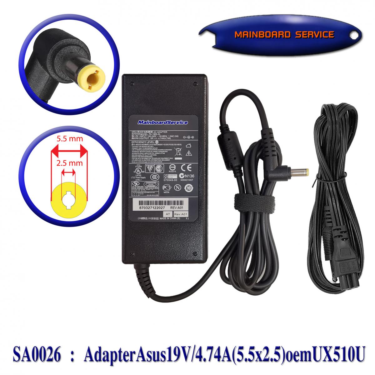 รายละเอียดสินค้า Adapter Asus 19V/4.74A (5.5x2.5) Support : UX510U,A42J,A43S,N43S,X45V,K43,K42j,X44,K450J,K455L