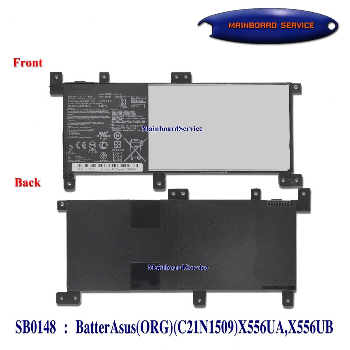 รายละเอียดสินค้า Battery Asusแท้ (C21N1509),X556UA,X556UB,X556UF,X556UJ,X556UQ,X556UR,X556UV,K556,K556UA,K556U