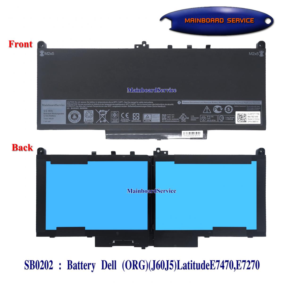 Battery Dell Latitudeแท้(J60J5)E7470,E7270 55wh 7.6v 6874mAh