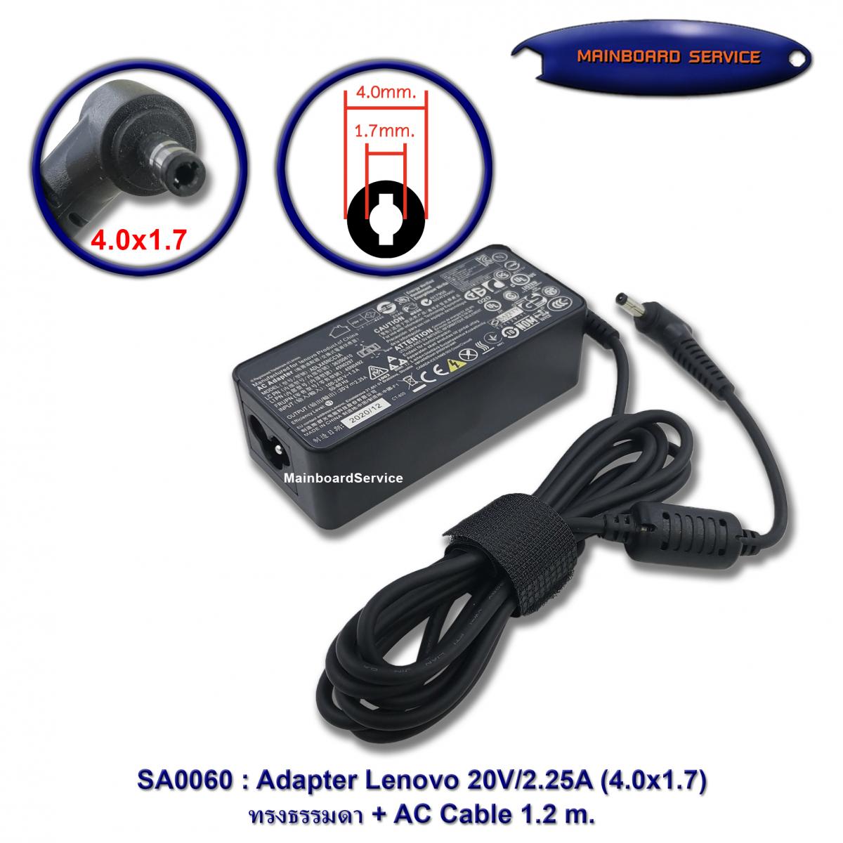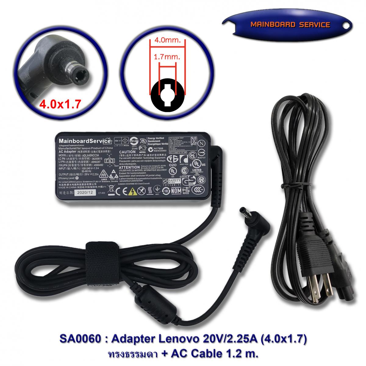 AdapterLenovo20V/2.25A(4.0x1.7)ORGทรงธรรมดา320-14ISK,320-14IKB,320-14AST,320-14IAP,330-14IKB,330-14ISK