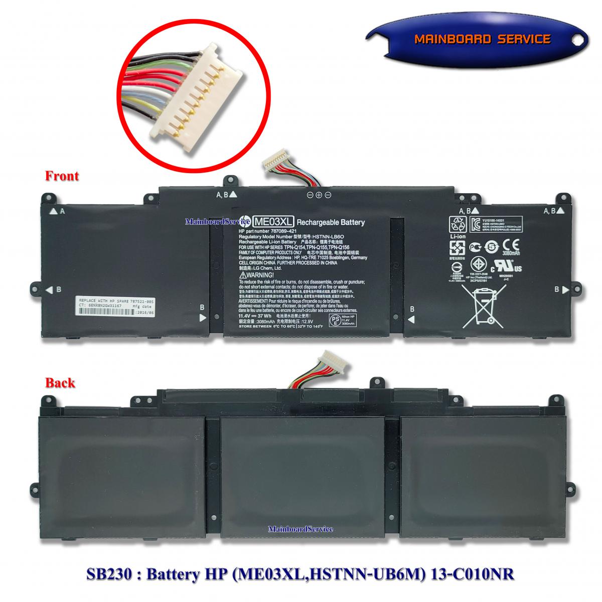 รายละเอียดสินค้า Battery HP (ME03XL,HSTNN-UB6M) 13-C010NRSupport : 13-Csenies,13-C110NR,13-C002DX,13-C04TU,11-D010NR,11-D020WN,11-D014TUNotebook 787521-005,HSTNN-UB6M