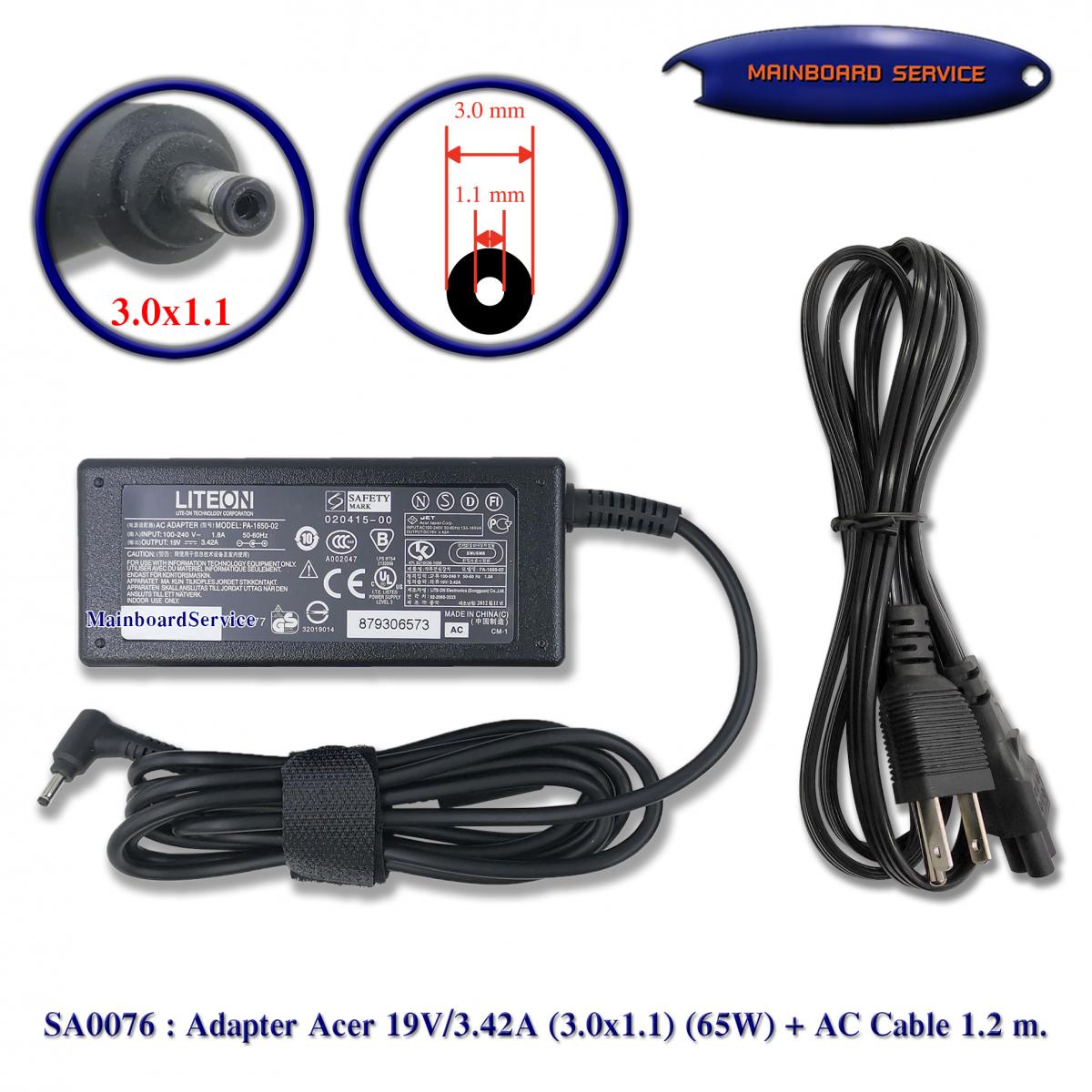 รายละเอียดสินค้า Adapter Acer 19V/3.42A (3.0x1.1) (65W) Swift3Support : SF314-52,SF314-55G,SF314-56,SF314-56G,SF114-32,SF314-41,SF314-42,Aspire3,A314-22,A315-22,A315-23,A315-34,A315-58,Aspire5,A514-54
