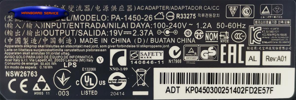 AdapterAcer19V/2.37A(3.0x1.1)ORGทรงธรรมดา