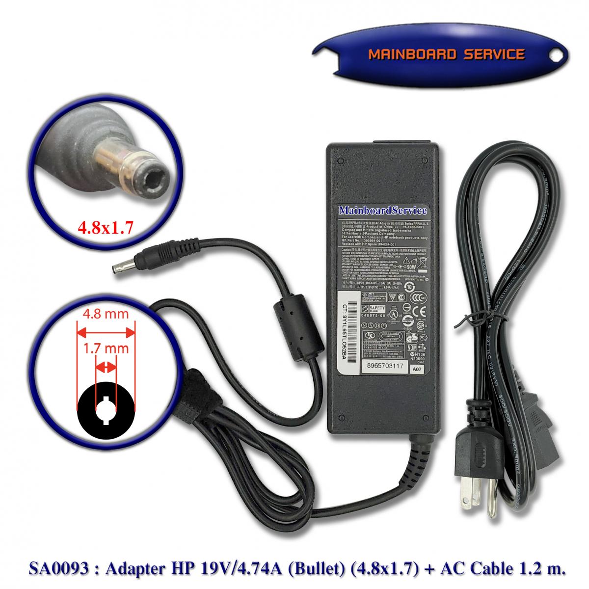 Adapter HP 19V/4.74A หัว Bullet (4.8x1.7)