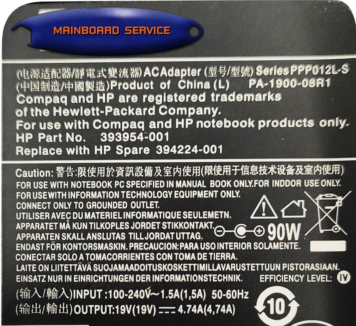 AdapterHP19V/4.74A(4.8x1.7)(Bullet)V3000,DV2000(4.8x1.5)