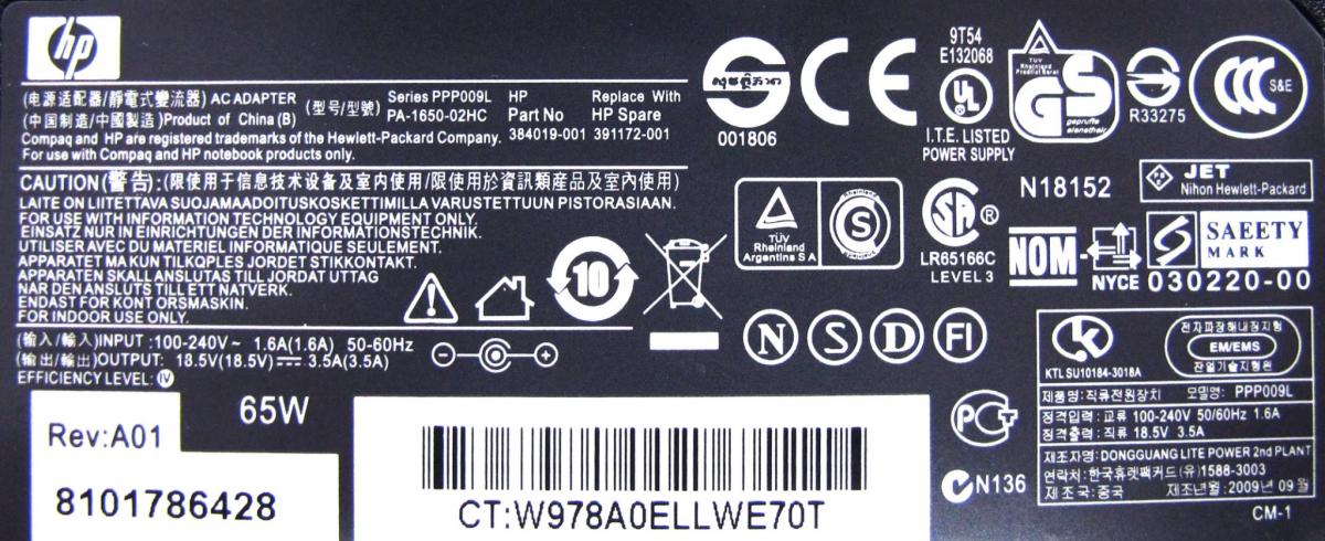AdapterHP18.5V/3.5A(4.8x1.7)oem