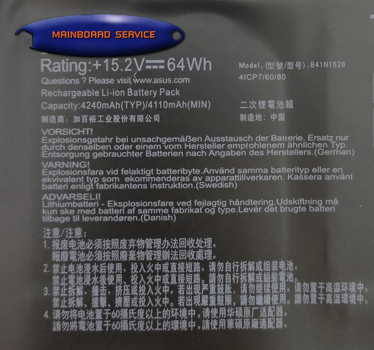 BatteryAsus(ORG)(B41N1526)GL502,GL502V,GL502VM,G502,G502V,G502VS