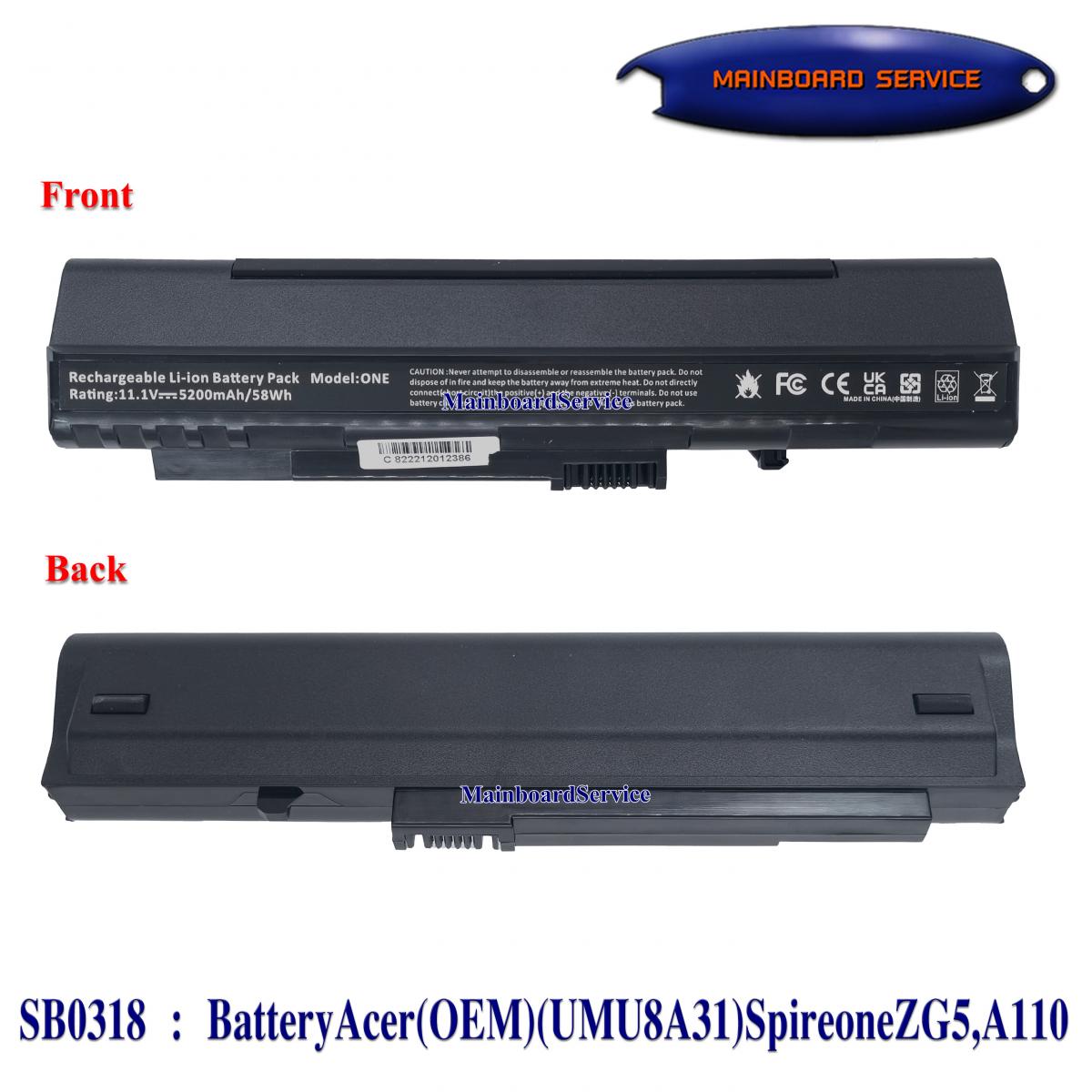 รายละเอียดสินค้า BatteryAcer(OEM)(UMU8A31)SpireoneZG5,A110,A150(UM08A71,UM08A72,UM08A73,UM08B74,UM08A51,UM08A52)