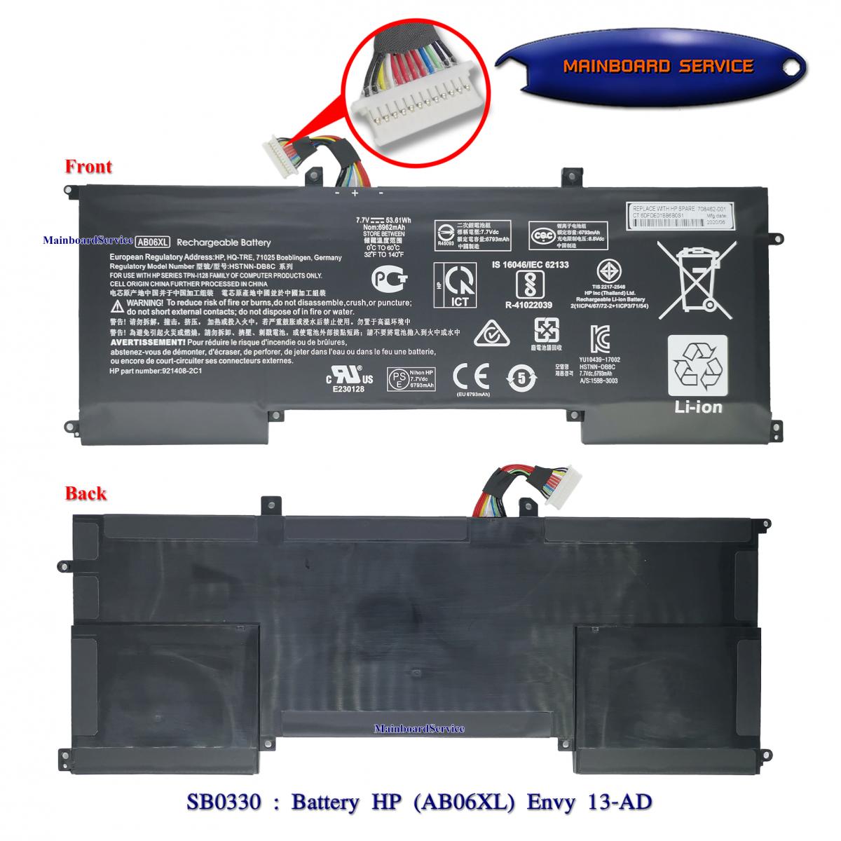 รายละเอียดสินค้า Battery HP (AB06XL) Envy 13-ADSupport : 13-AD065NR,13-AD019TU,13-AD022TU,13-AD023TU,13-AD025TU,13-AD026TU,13-AD027TU,13-AD028TU,HSTNN-DB8C,HSTNNDB8C,921408-2C1,9214082C1,TPNI128