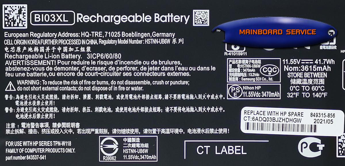 รายละเอียดสินค้า Battery HP (BI03XL) Pavilion X360Support : 13-U000,M3-U000,M3-U001DX,U003DX,U103DX,U105DX,13-U100TU,U118TU;HP,14-AX000,14-AX010WM,AX020WM,AX030WM,AX040WM,843537-541,844203-850(HSTNN-UB6W,ON03XL)