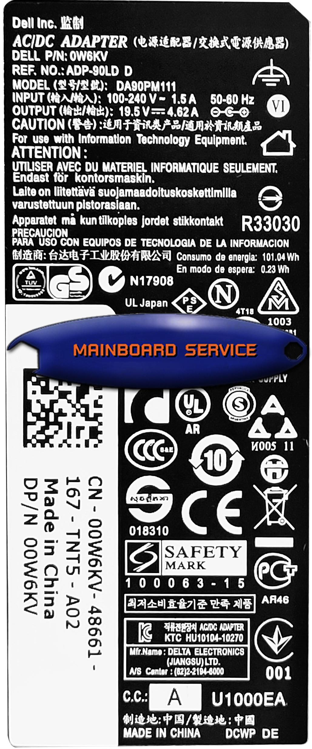 AdapterDell19.5V/4.62A(7.4x5.0)oemN4020,N4030,N4050,N4110,N411Z,N4120,N5030,N7010,3421,3437,3441,3442,3541,1150,1200,1210,1300