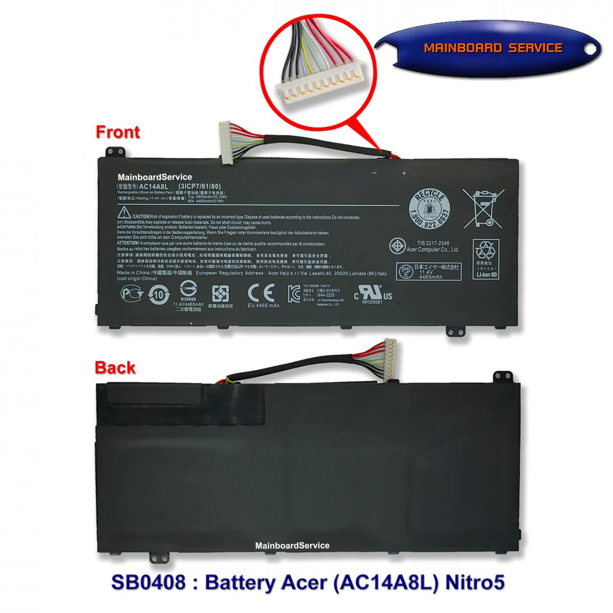 รายละเอียดสินค้า Battery Acer (AC14A8L) Nitro5Support : AN515-51,Aspire V17,NITRO BE VN7-792G,VX5-591G-72LY,VX5-591G-58AX,Aspire VN7-571,VN7-571G,VN7-591,VN7-591G,VN7-791G(AC15B7L,AC17A8M)