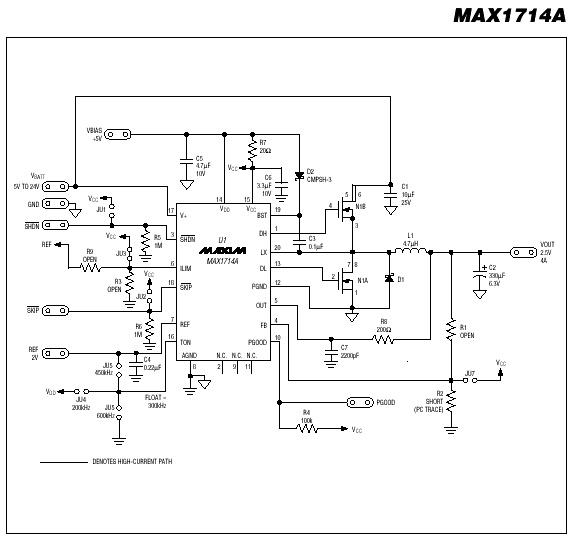 รายละเอียดสินค้า The MAX1714 pulse-width modulation (PWM) controller provides the high efficiency, excellent transient response, and high DC output accuracy needed for stepping down high-voltage batteries to generate low-voltage CPU core or chip-set/RAM