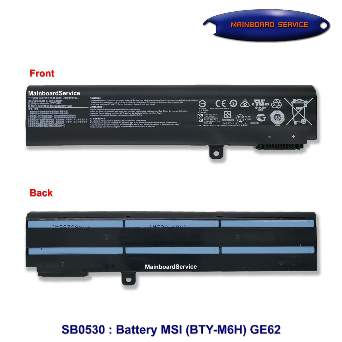 รายละเอียดสินค้า Battery MSI (BTY-M6H) GE62Support : GL63,GE72,GP62,GP72,GL62,GL72,PE60,PE70,MS-16J1,MS-16J2,MS-16J3,MS-16J5L,MS-16J6,MS-16J6B ,MS-16P,MS-16P3,MS-1792,1793,1795,MS-17C6,MS-17E2,