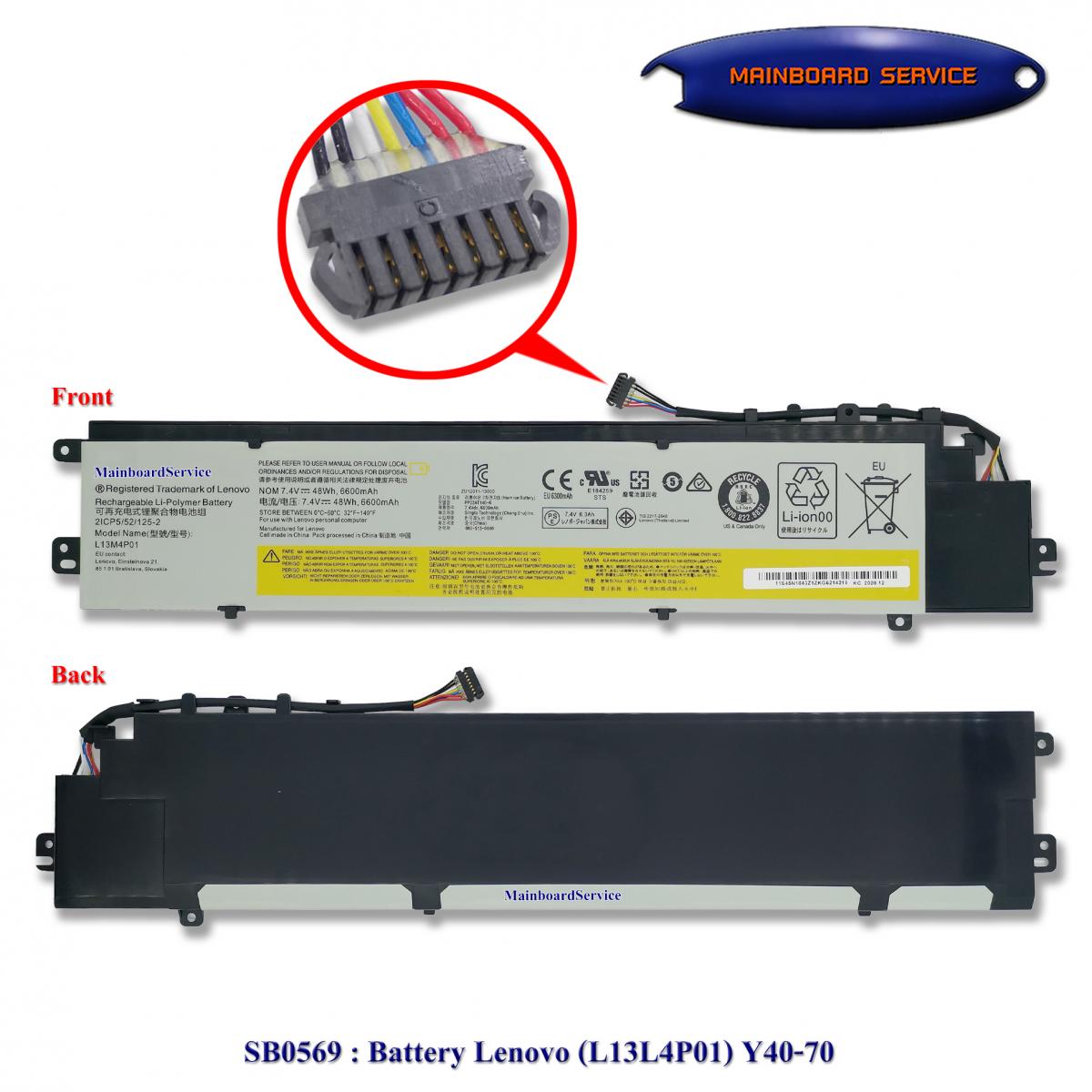 รายละเอียดสินค้า Battery Lenovo (L13L4P01) Y40-70Support : (L13M4P01,L13C4P01)S200,S206,2ICP5/52/125-2