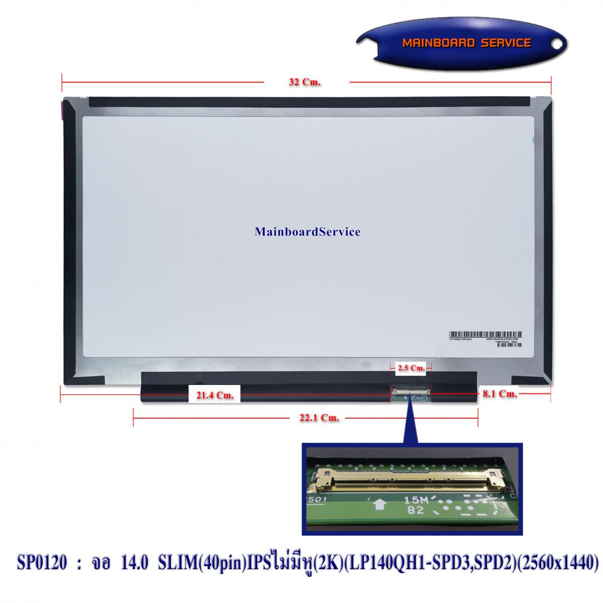 จอ 14.0 SLIM(40pin)IPSไม่มีหู(2K)(LP140QH1-SPD3,SPD2)(2560x1440)