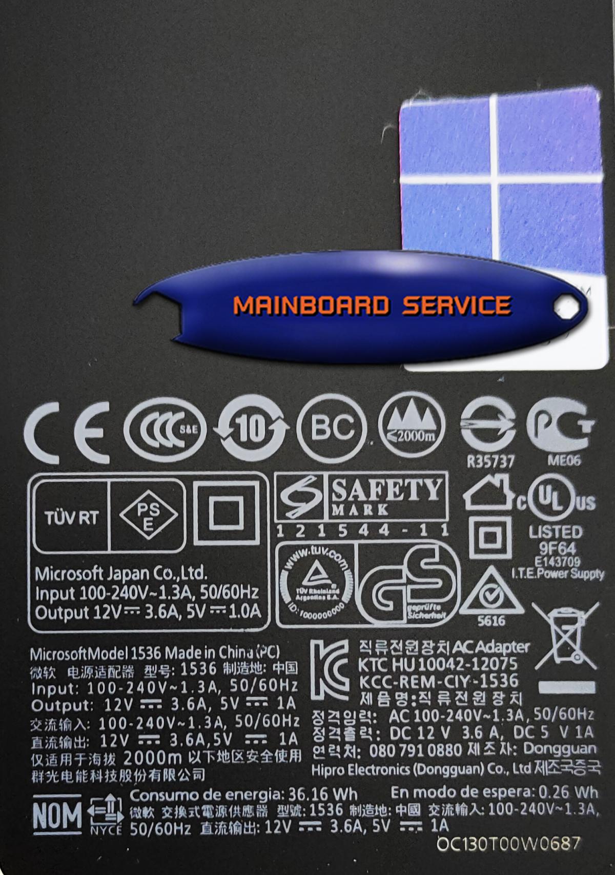 Adapter SurFace 12V/3.6A (48w) (USB2.0) 5pin Model1536