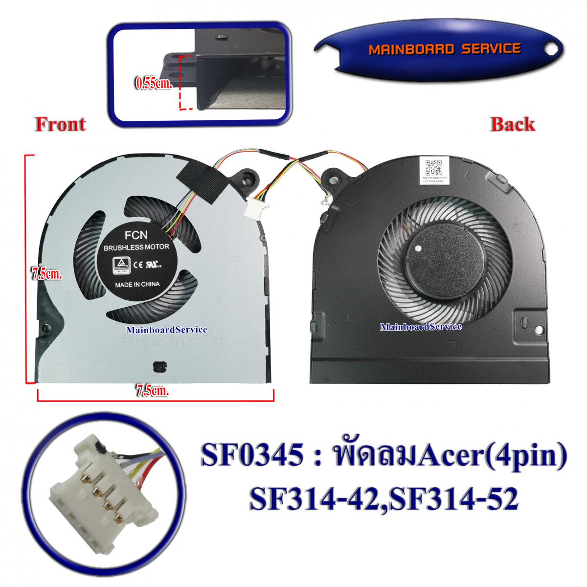 รายละเอียดสินค้า พัดลม (4pin) Acer SF314-42Support : SF314-52,SF314-53,SF314-54,SF314-56,SF314-57,SF315-52,SF315-51,SF315-54,N17P3,AcerSwift3