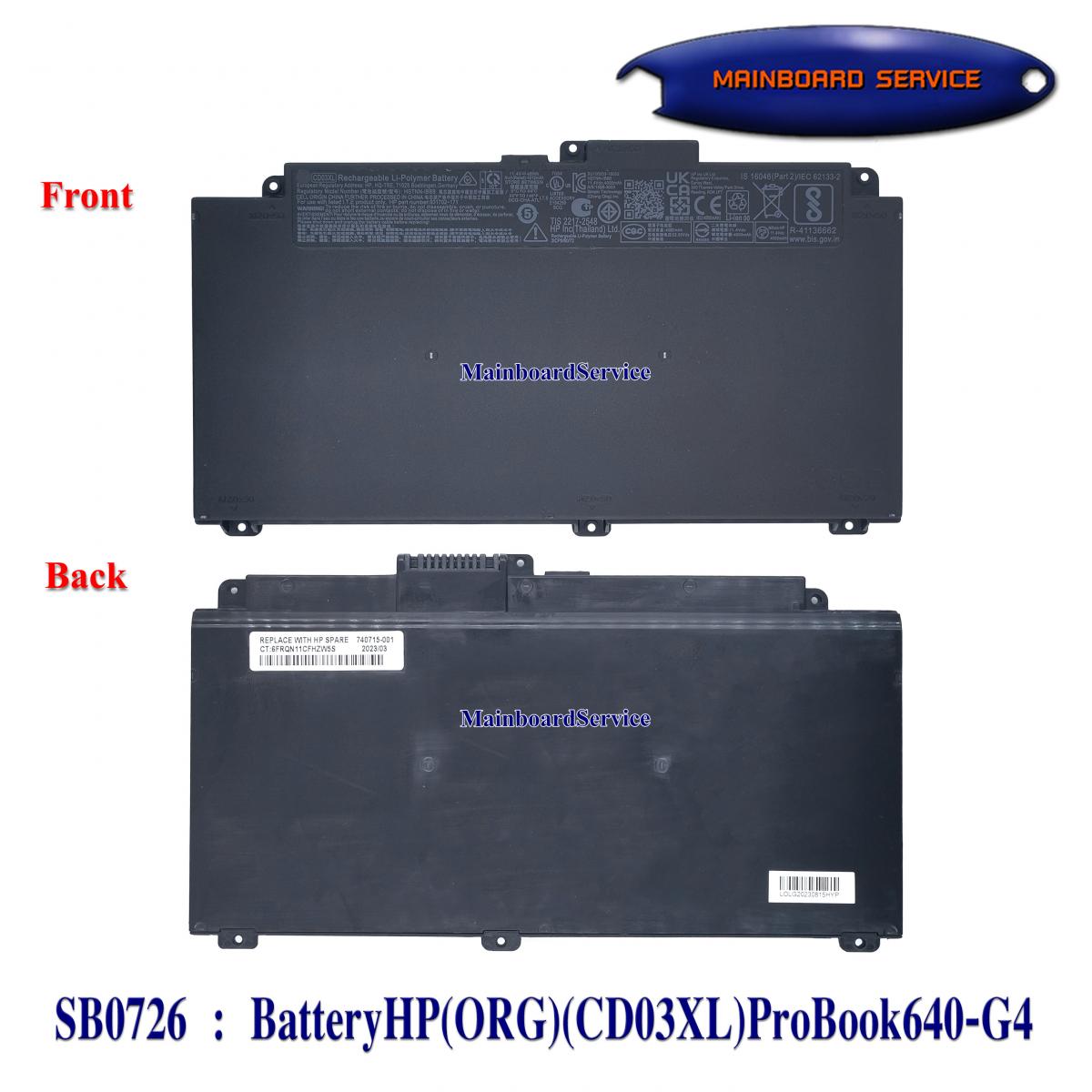 รายละเอียดสินค้า BatteryHP(ORG)(CD03XL)ProBook640-G4,645-G4,650-G4,G5, 650-G7,LB8F,IB8B,UB7K,931702-421, CDO3XL,931702-171,931702-541,93171717171,9-850 HSN-114C,HSN-115C
