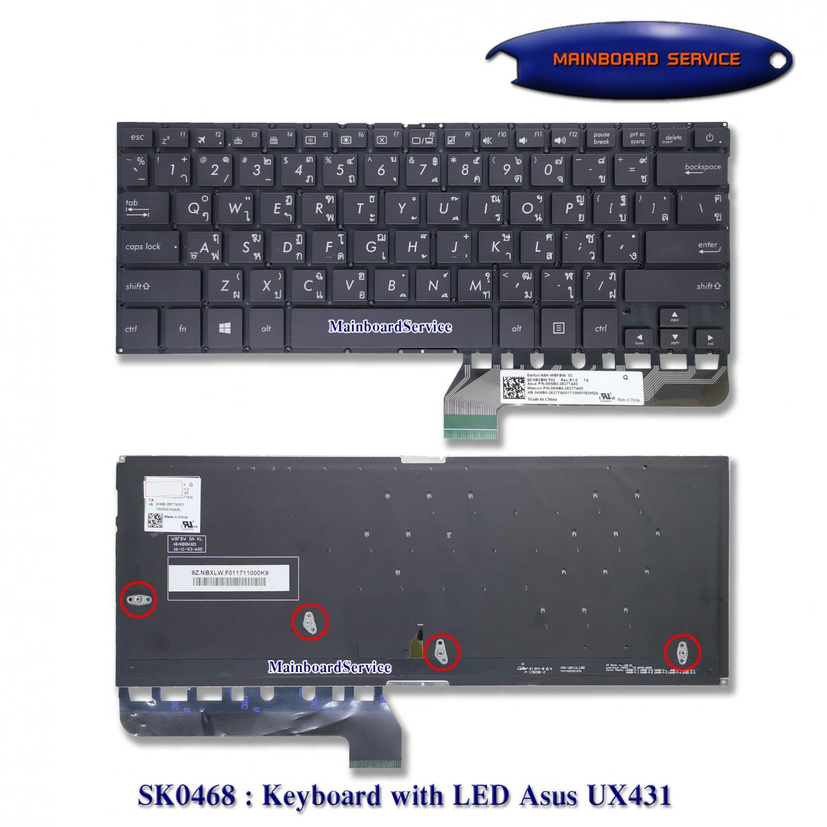 รายละเอียดสินค้า Keyboard with LED Asus UX431Support : X431,V431,K431,S431,X431FAC,UX431U,UX431F,U4500F