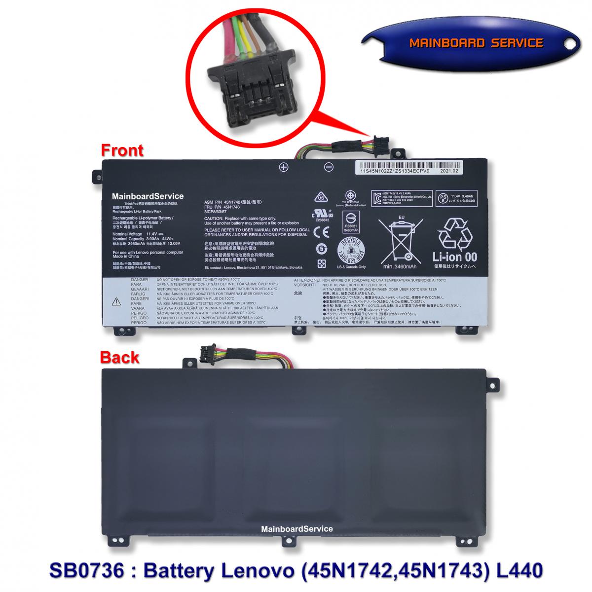 รายละเอียดสินค้า Battery Lenovo (45N1742,45N1743) L440Support : L540,00NY639,T550,T560,W550S,45N1740,45N1741