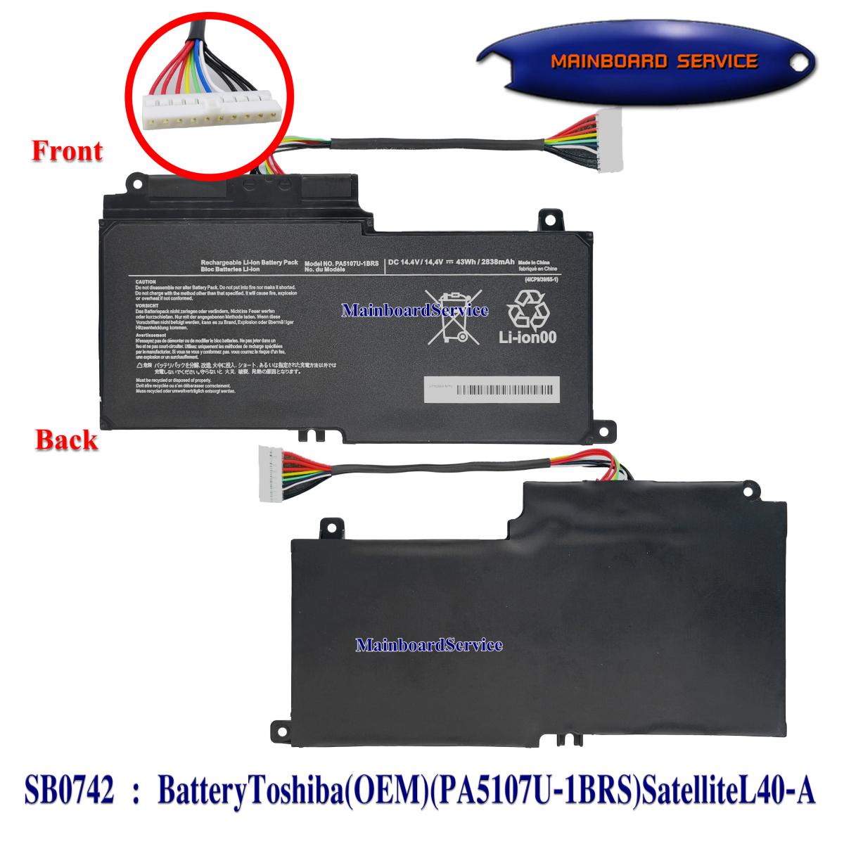 รายละเอียดสินค้า BatteryToshiba(OEM)(PA5107U-1BRS)SatelliteL40-A,L50-A,L50D-A S40D-A,L45,L45D,L50,L55,L55T,S55,P55,P50,P55,P50-A,S55-A-5275,S55-A5294