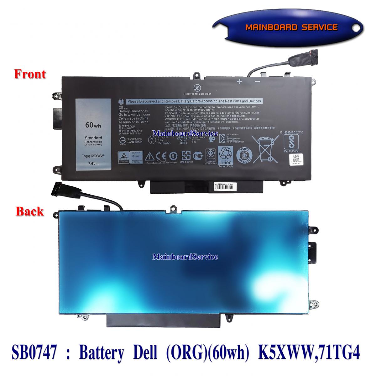 รายละเอียดสินค้า BatteryDell(ORG)(60wh) K5XWW,71TG4,X49C1,071TG4,0X49C1,CFX97,0CFX97)5289,7280,7389,7390
