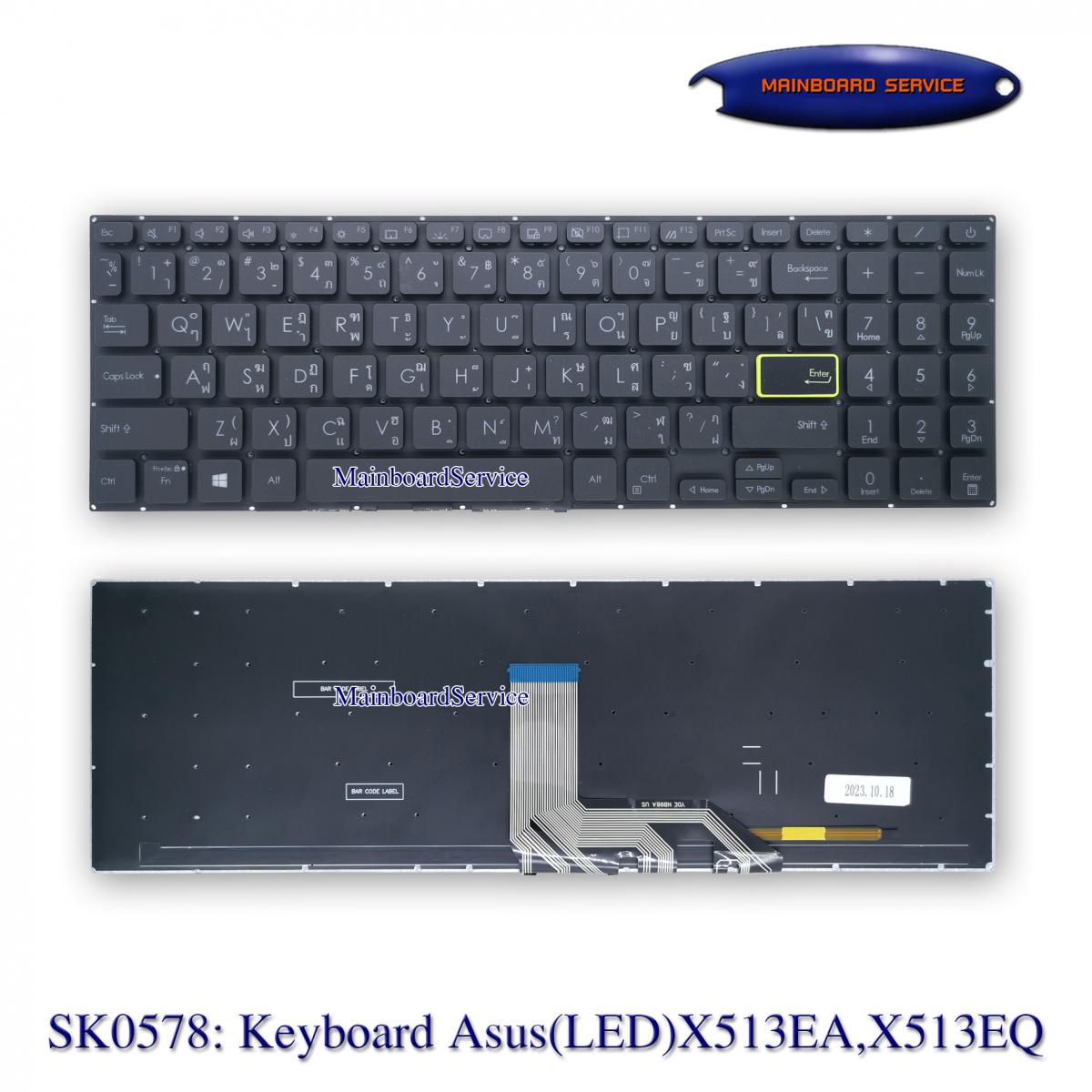 คีย์บอร์ดAsus(LED)X513EA,X513EQ,X513UA,M513IA,M513UA,M5600IA,V5050EA,Q15,E510,S533,S513UA,L510,