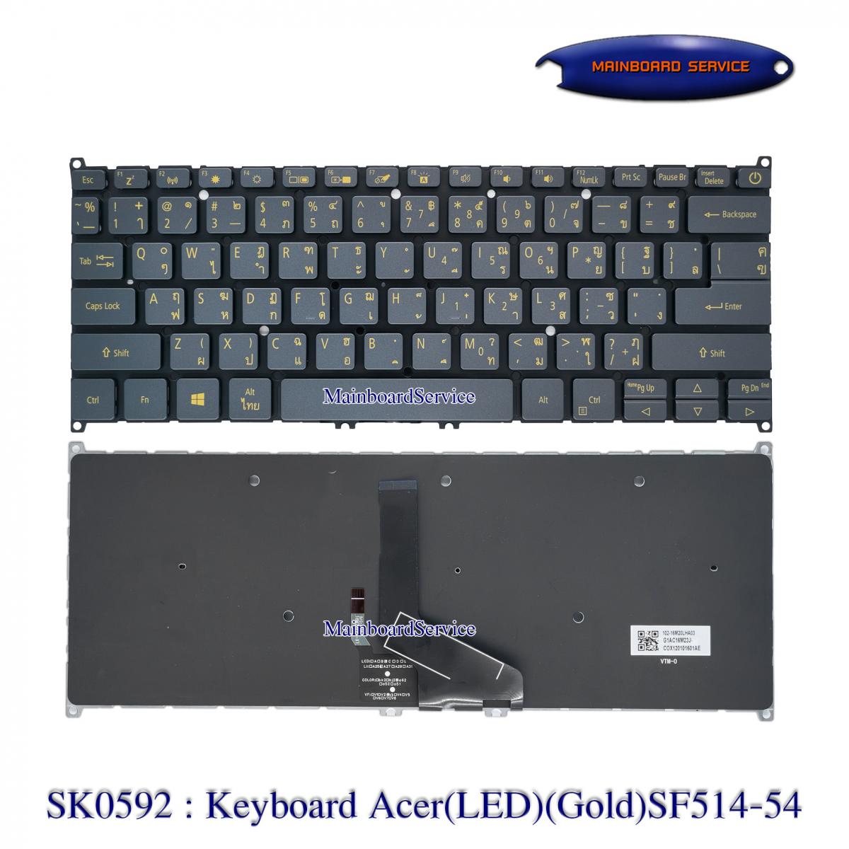 รายละเอียดสินค้า คีย์บอร์ดAcer(LED)(Gold)SF514-54,SF315-57,SF514-52,SF314-57-38N7,P614,N18P6,N19H3,N17W3,N18H2,N19C4,N19H4,Swift5,Swift3,