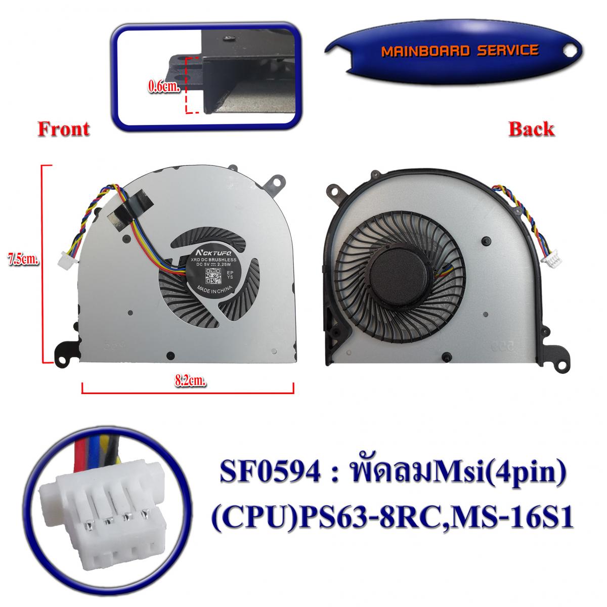 พัดลมMsi(4pin)(CPU)PS63-8RC,MS-16S1,MS-16S3,MS-16S2,