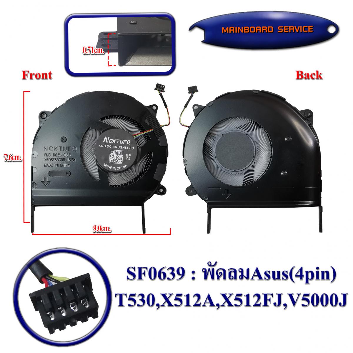 พัดลมAsus(4pin)T530,X512A,X512FJ,V5000J,V5000D,vivobook15,(13N1-88M0101,NS85C05-18L34)