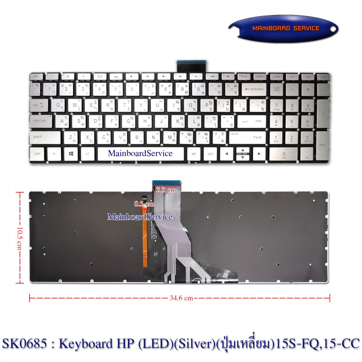 คีย์บอร์ดHP(LED)(Silver)(ปุ่มเหลี่ยม)15S-FQ,15-CC,15-BS,15-BW,15S-DU,15S-EQ,15S-GR,