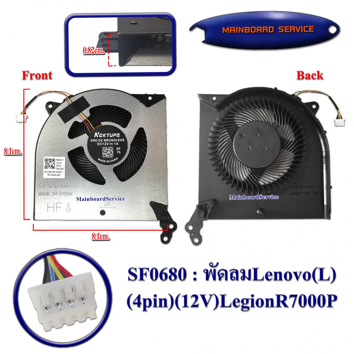 รายละเอียดสินค้า พัดลมLenovo(L)(4pin)(12V)LegionR7000P,Y7000P,Y550,Y550-15E,R700,Y700,Legion5,15ARH05,Legion7,15IMH05,0W0J86(XRF5M325065A1C)