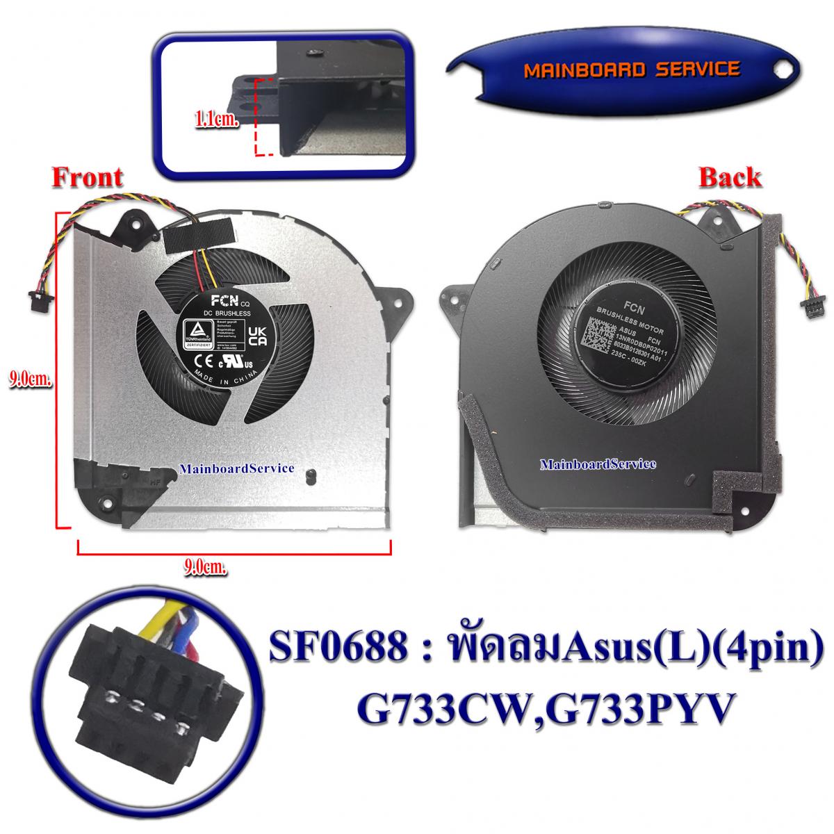พัดลมAsus(L)(4pin)G733CW,G733PYV,G733PZ,Scar17(DFSCL42P16593J)