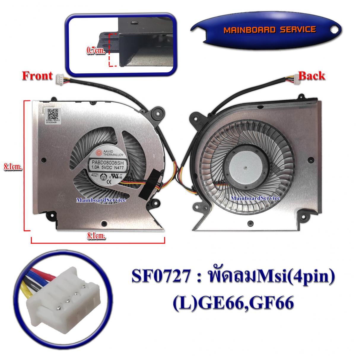 รายละเอียดสินค้า พัดลมMsi(4pin)(L)GE66,GF66,GL66,GF76,GP66,GL76,GF65,GF75,GF63,MS-1581,MS-1583,MS-1541,MS-16R1,MS-16R2,MS-17L3,MS-1583,