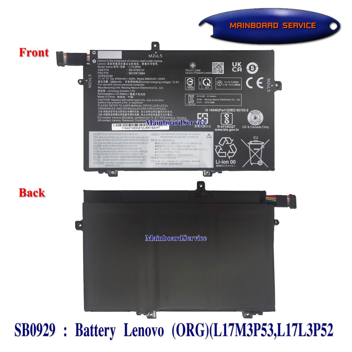 รายละเอียดสินค้า BatteryLenovo(ORG)(L17M3P53,L17L3P52,01AV463,01AV464,SB10T83137,5B10W13894)L480,L580,