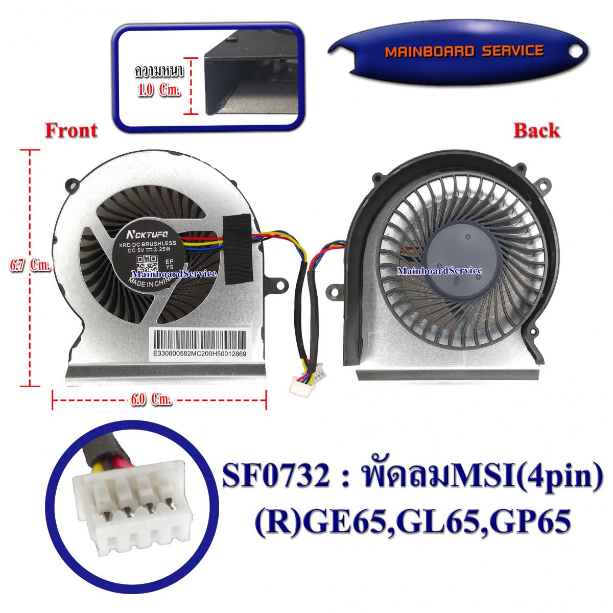 พัดลมMSI(4pin)(R)GE65,GL65,GP65,MS-16U1,MS-16U2,