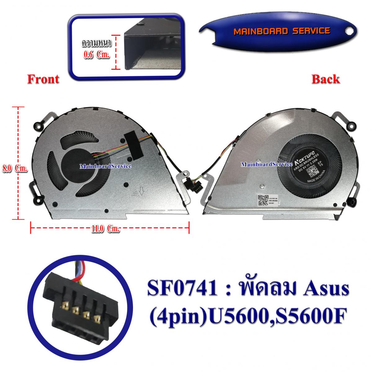 พัดลมAsus(4pin)U5600,S5600F,X521FL,S533E,S533FA,M5333IA,VivoBook15X,