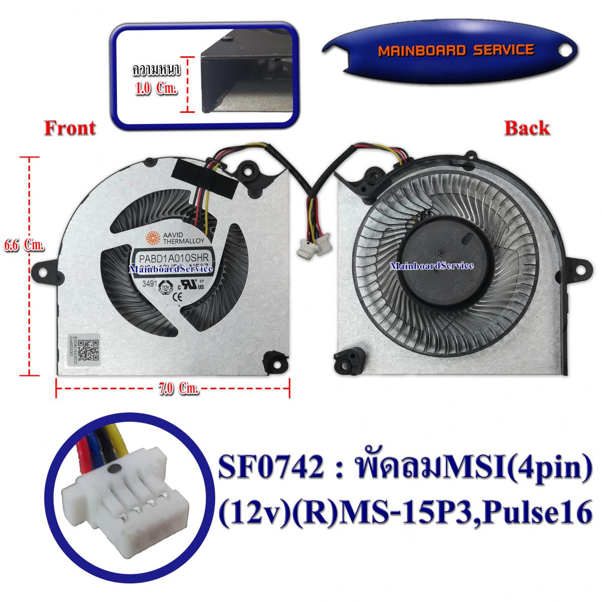 พัดลมMSI(4pin)(12v)(R)MS-15P3,Pulse16,C1VFKG,PABD1A010SHR,N527,N528,