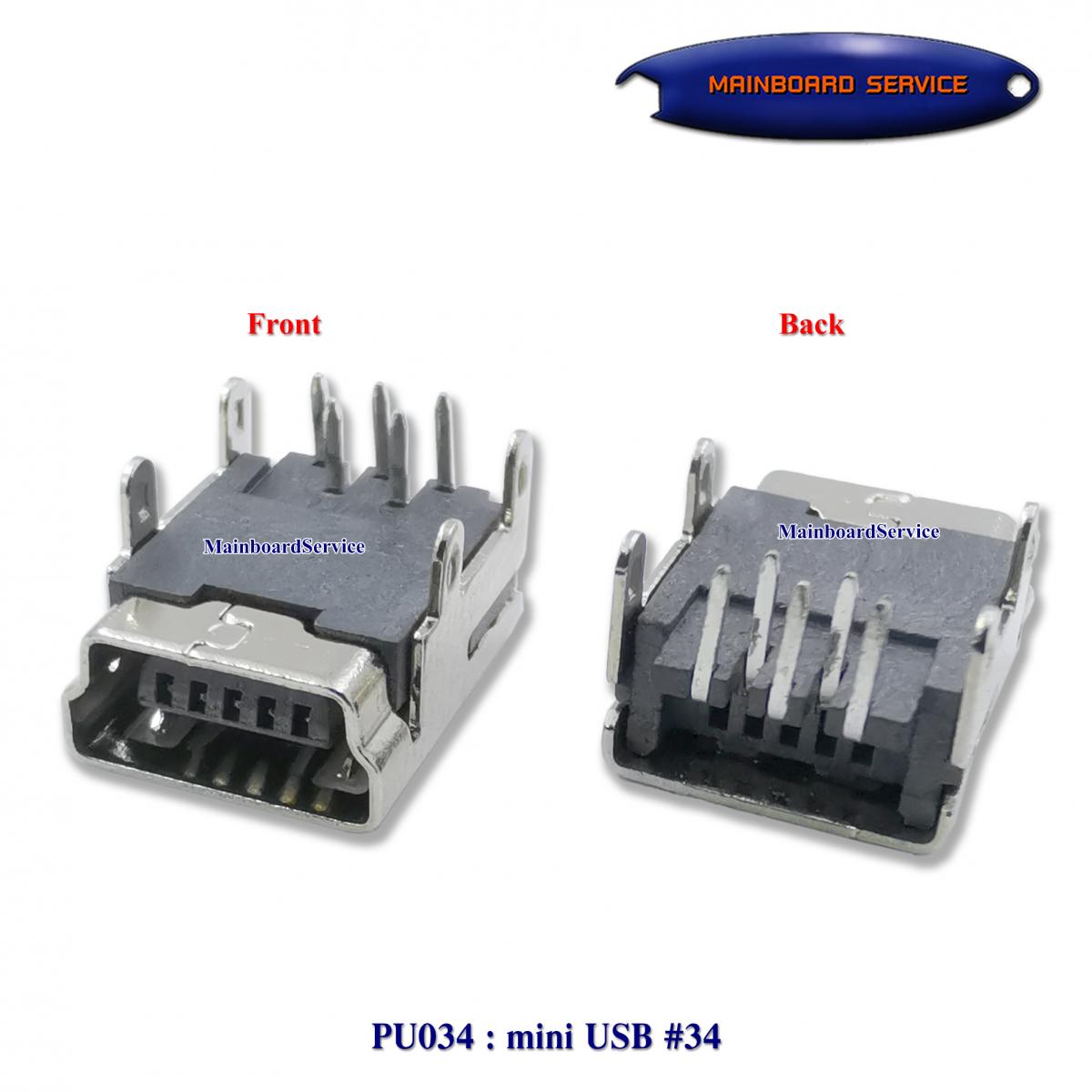 รายละเอียดสินค้า Female mini USB Connector , Port ชนิด Plate Through Hole บัดกรีลง PCB 5 Pins + Shield Ground 4 Pins เนื้อพลาสติกสีดำหรือขาว