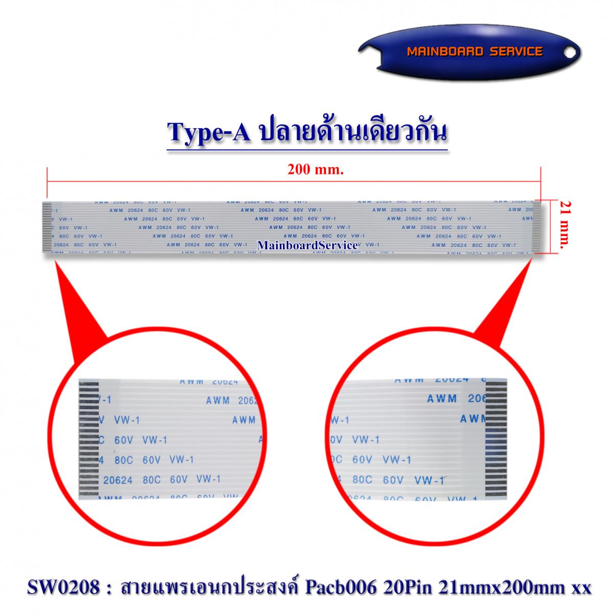 SW0208 : สายแพรเอนกประสงค์ Pacb006 20Pin 21mmx200mm xx