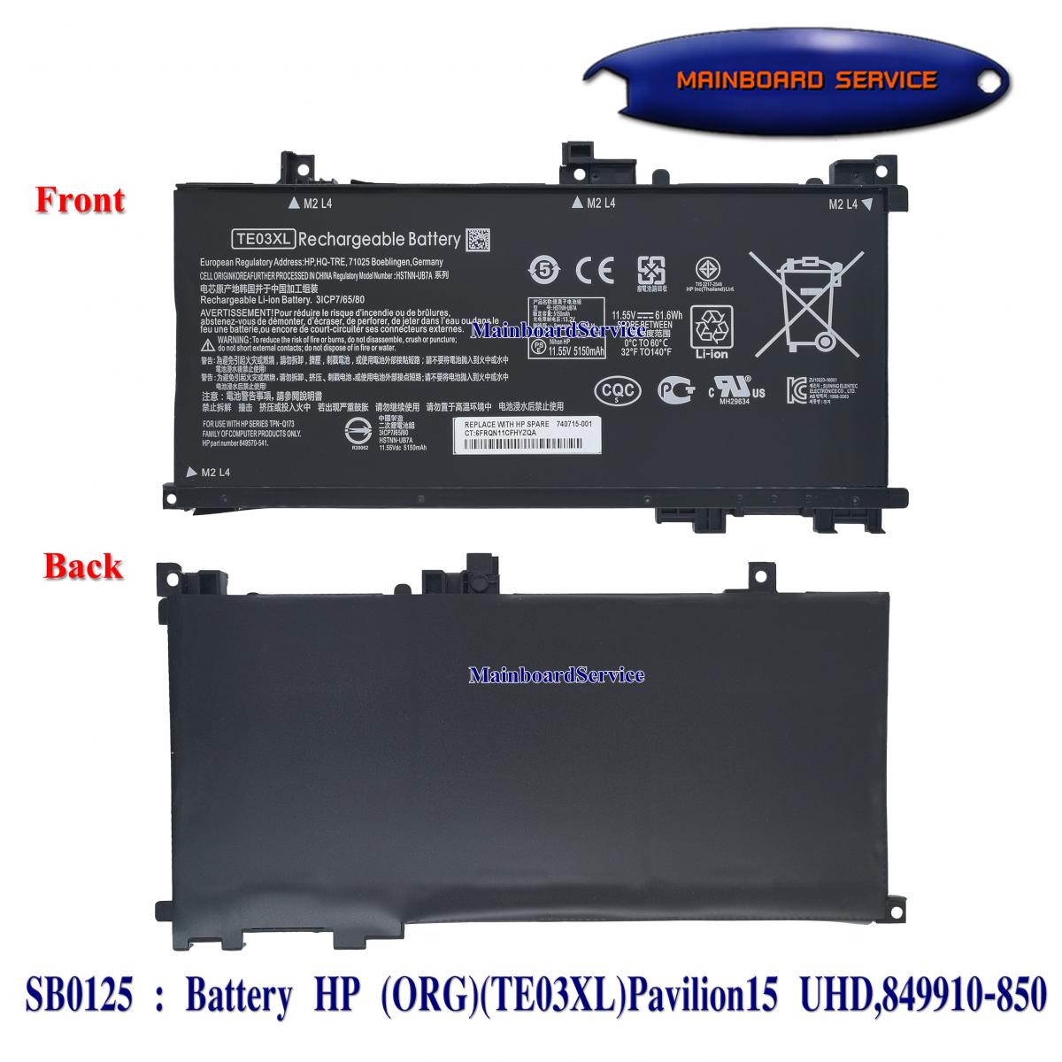 SB0125 : BatteryHP(ORG)(TE03XL)15UHD,849910-850,HSTNN-UB7A,